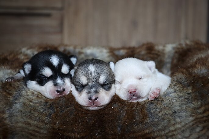 Am 16.03.2023 erblickten vier Pomsky Welpen das Licht der Welt, 3 Jungs und 1 Mädchen.